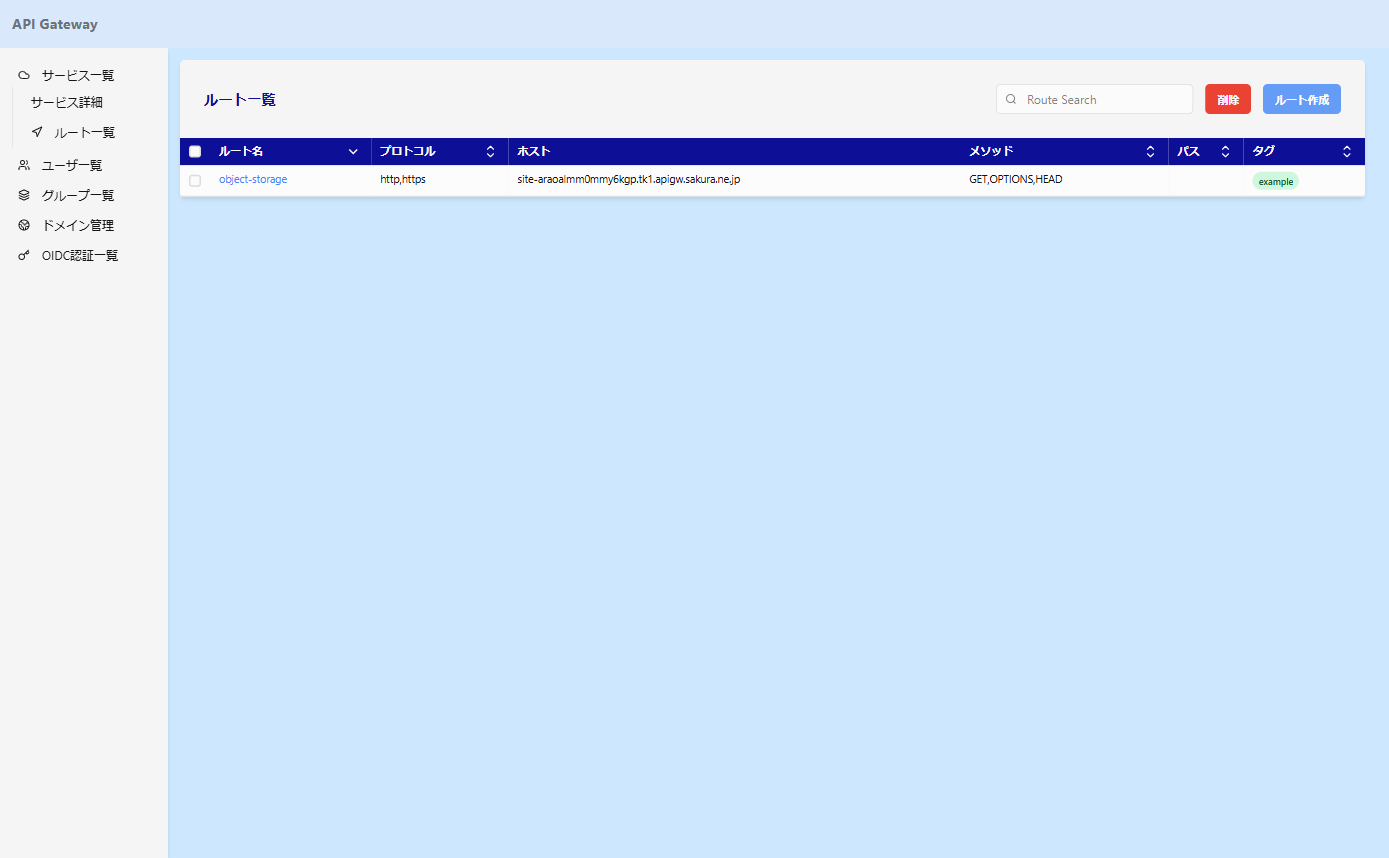サイドバーからルート一覧を選択し、ルート作成ボタンを押下します。