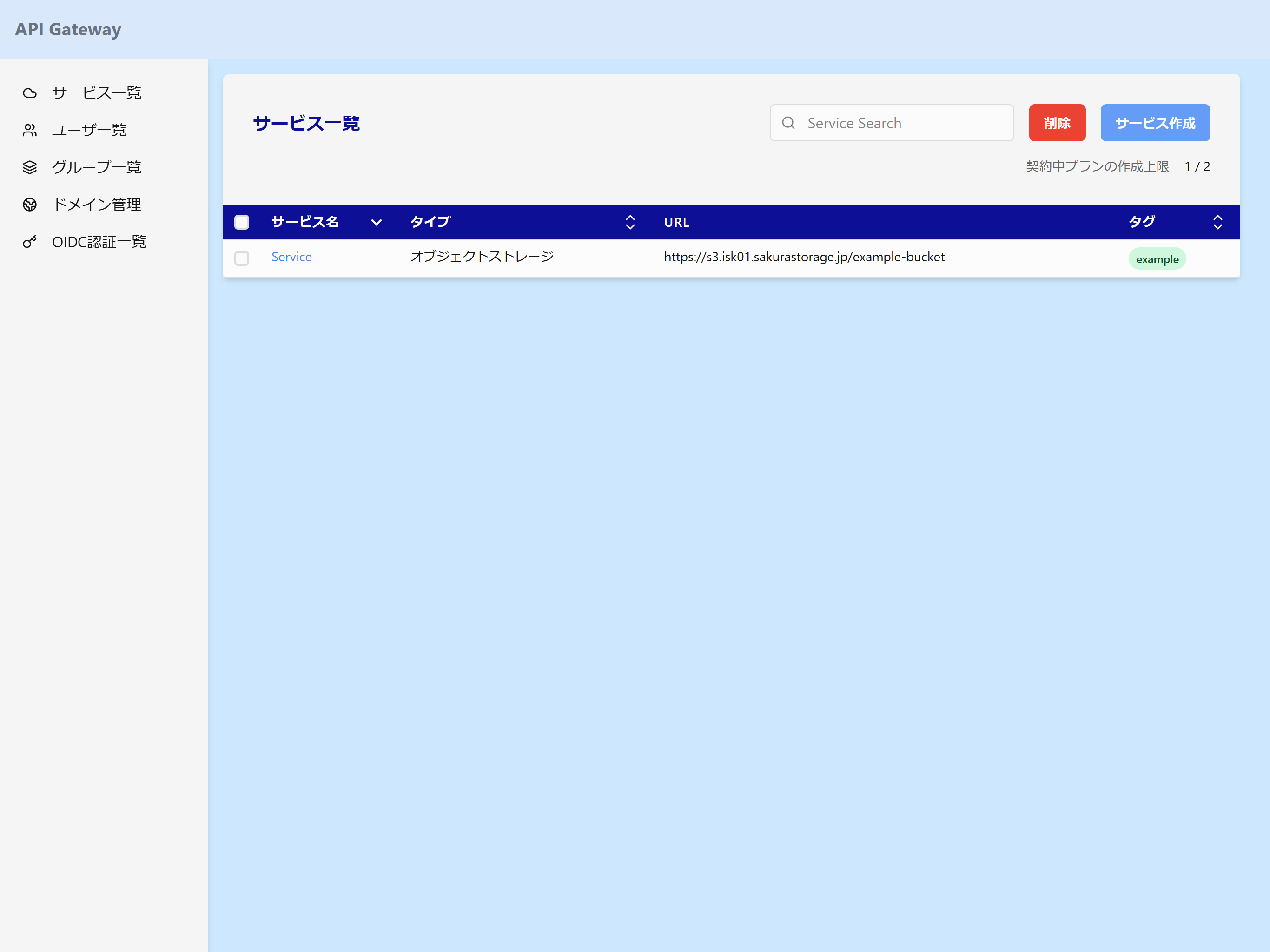 サイドバーからサービス一覧を選択し、サービス作成ボタンを押下します。