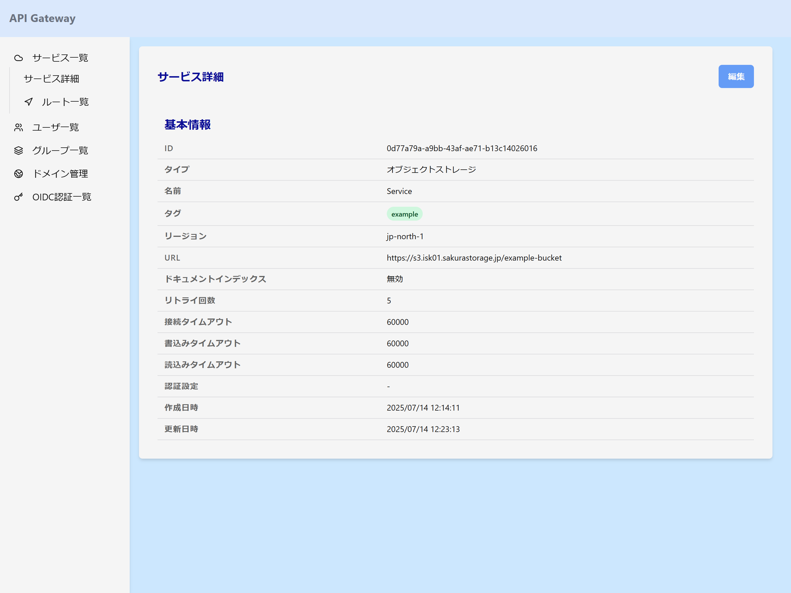 サービス詳細画面に遷移すると、登録したサービスの情報を確認することができます。