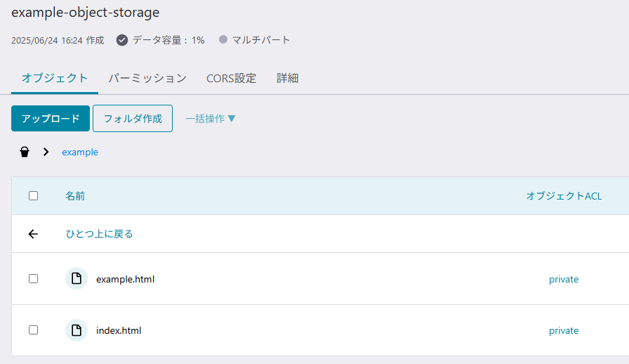 これでオブジェクトストレージの動作確認は完了です。