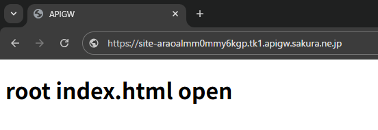 「ホストURL/」にアクセスすると「index.html」が表示されます。