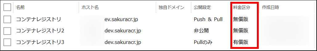 ※コントロールパネルの料金区分が「無償版」のコンテナレジストリが対象です。