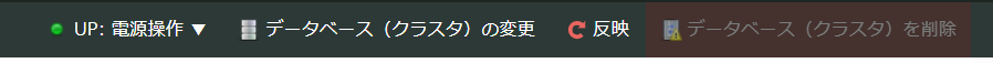コントロールパネル、APIから電源操作が可能です。データベース(クラスタ)の電源状態を操作します。 電源を操作すると、全ノードが処理を受けて電源状態を変更します。全ノードが共通の処理になり、1ノードのみ、2ノードを対象にするなどの操作は行えません。