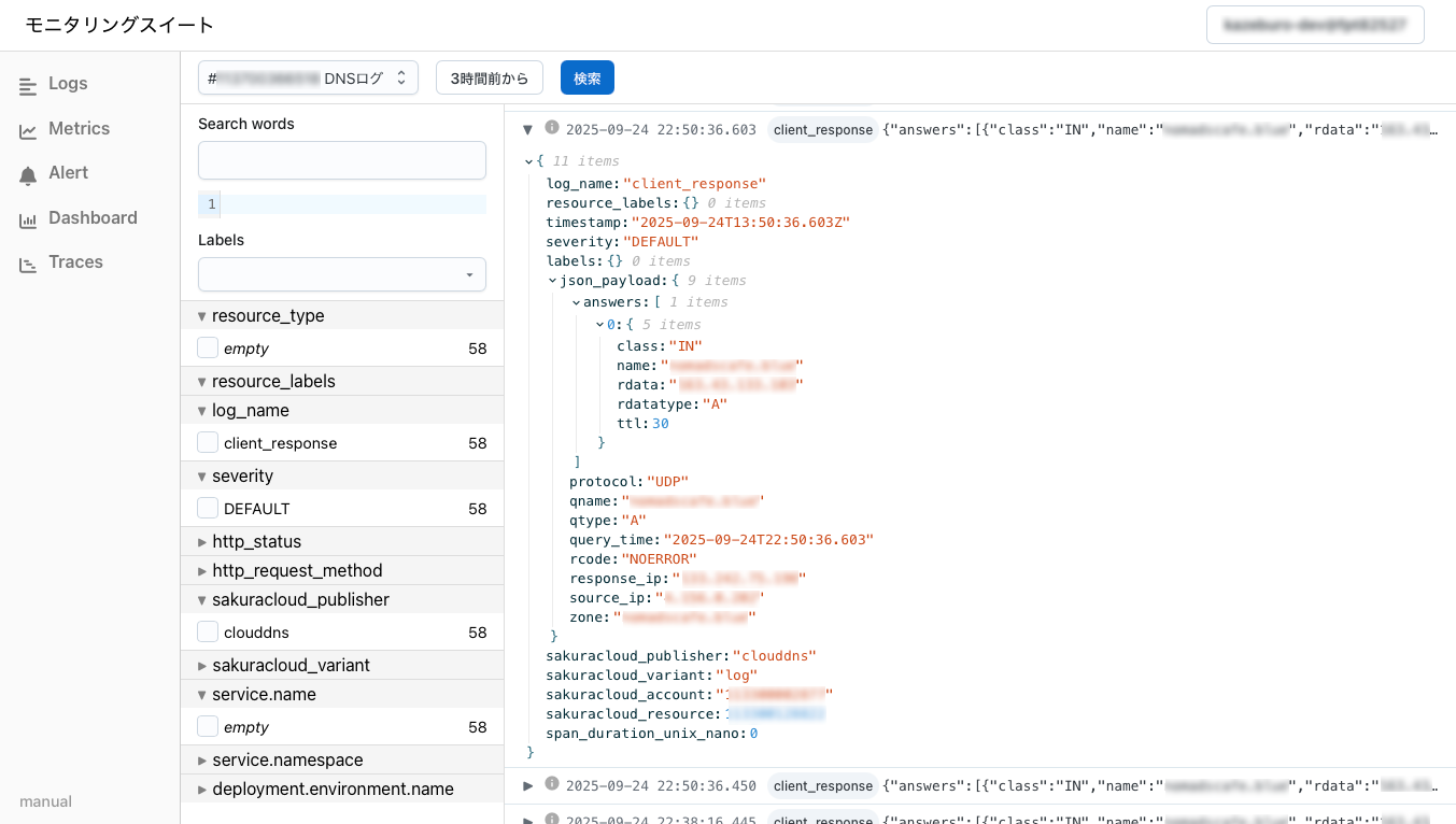 ・ログの取得から閲覧可能になるまでは数分程度の時間がかかることがあります。また大量のクエリが発生するなどの状況により一部のクエリが欠損する場合があります。