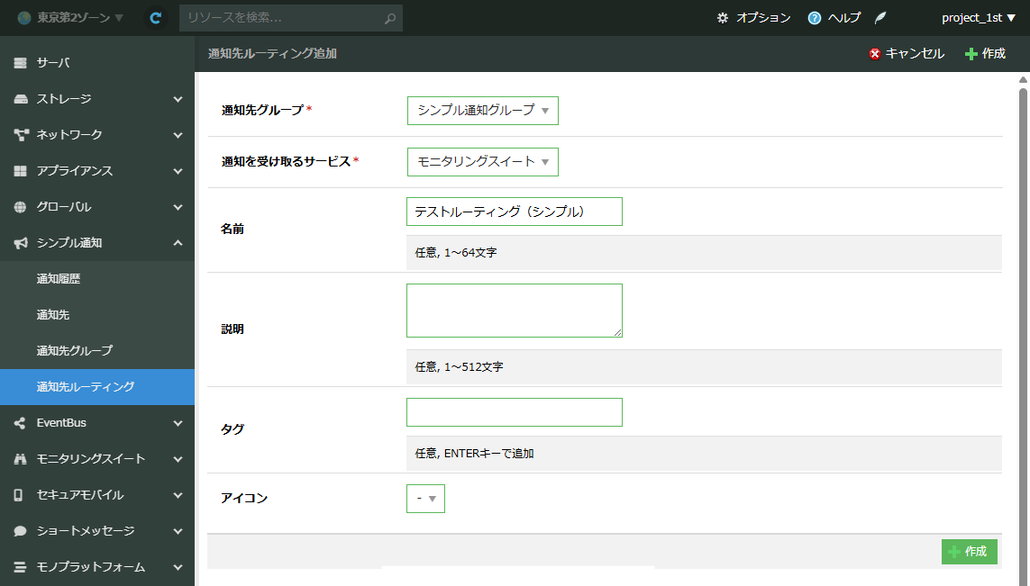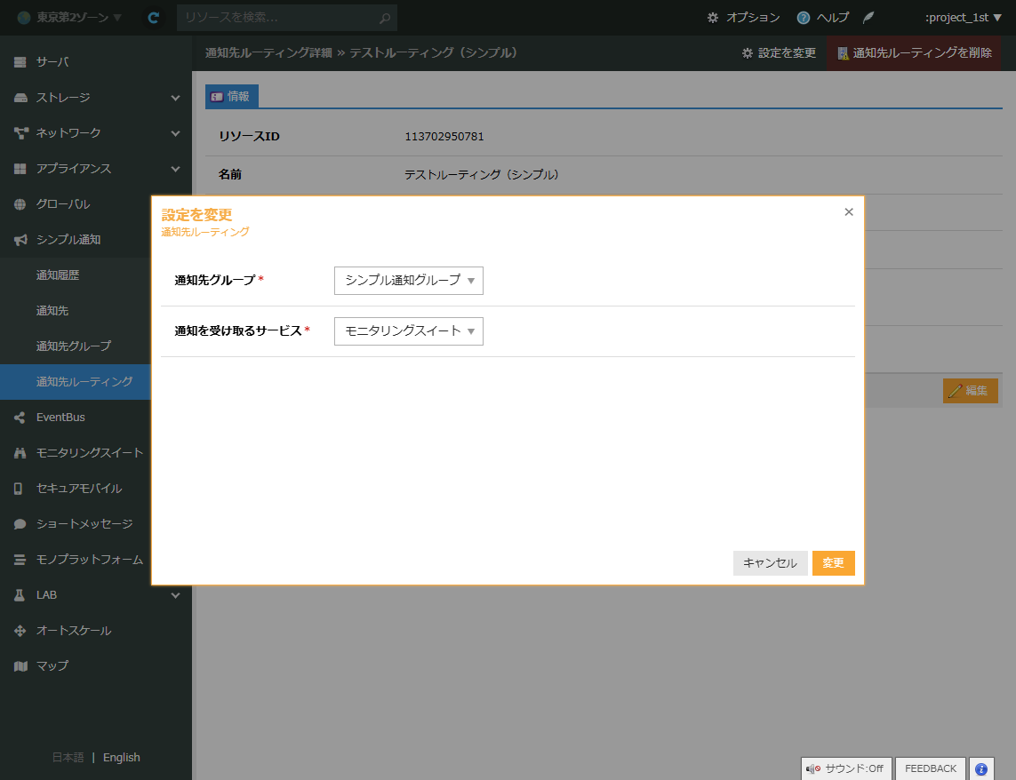 「通知先ルーティング」では、通知を受け取るサービスを指定します。