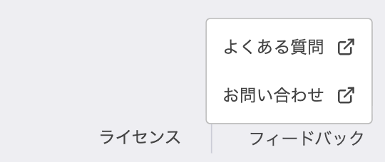 「ライセンス」をクリックすると、利用しているライブラリやサービスのライセンス情報にアクセスできるリンクが表示されます。