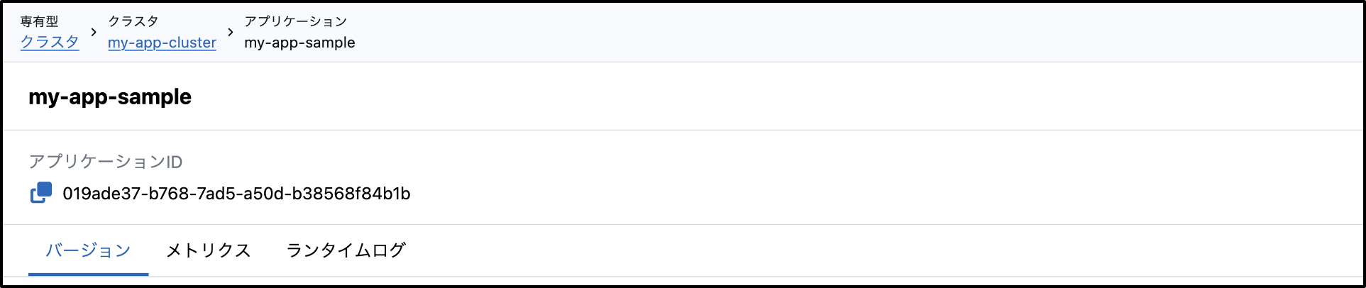 バージョン詳細画面では、選択したバージョンの情報を確認できます。画面上部には以下が表示されます。