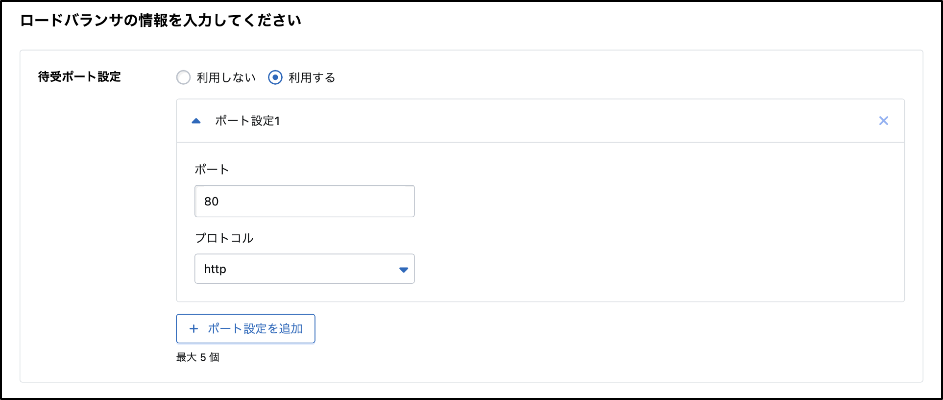 ロードバランサとLet's Encryptを同時に利用する場合、HTTP-01チャレンジを利用するため、待ち受けポートに以下を設定してください。