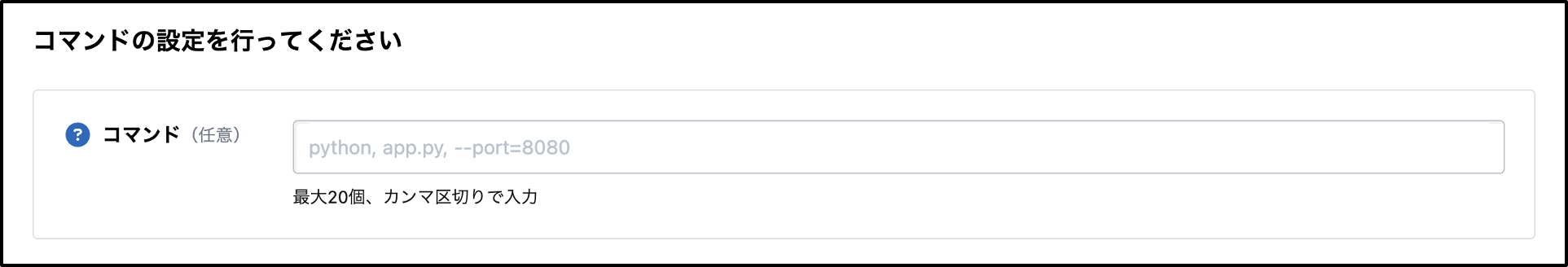 説明: コンテナ起動時に実行するコマンドと引数を入力します。