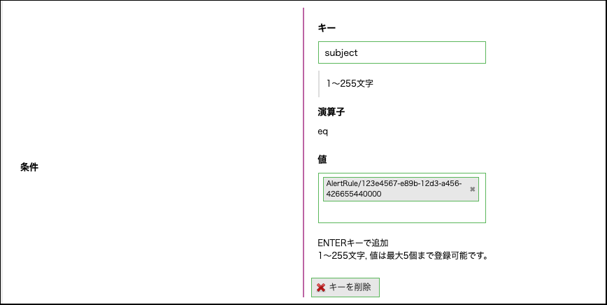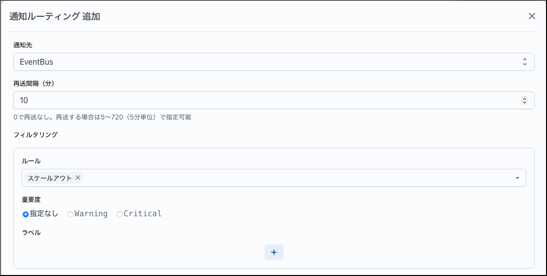 次に通知ルーティングを追加します。各項目は以下のように設定します。