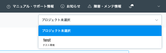 ログインに成功すると、ログインしたユーザに付与された権限に応じた作成済みプロジェクトが選択できます。
