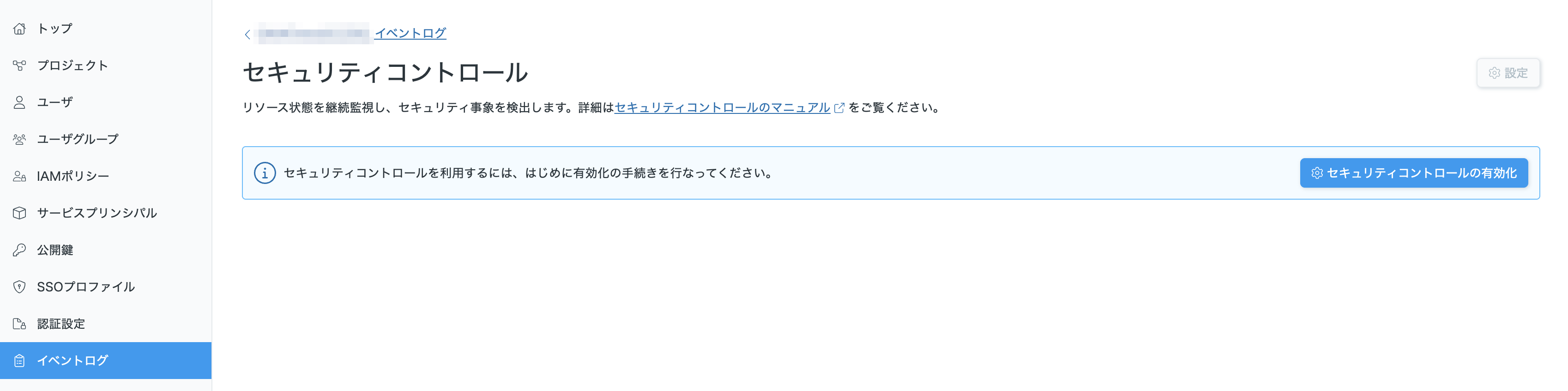初回は「セキュリティコントロールは無効状態」と表示されます。