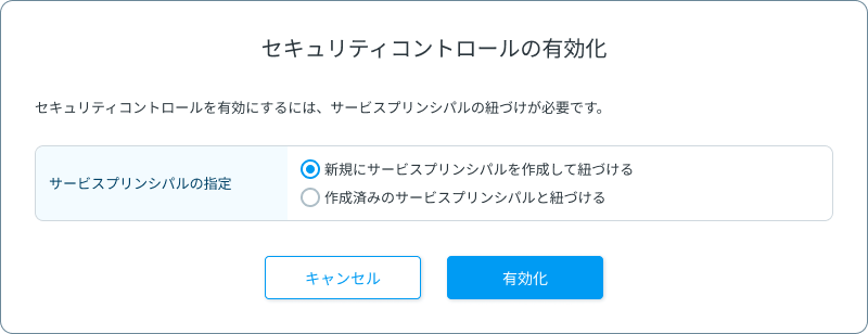 ※ セキュリティコントロールと紐づけるサービスプリンシパルは、IAMポリシーにて「セキュリティコントロールエージェント」のロールを付与しておく必要があります。