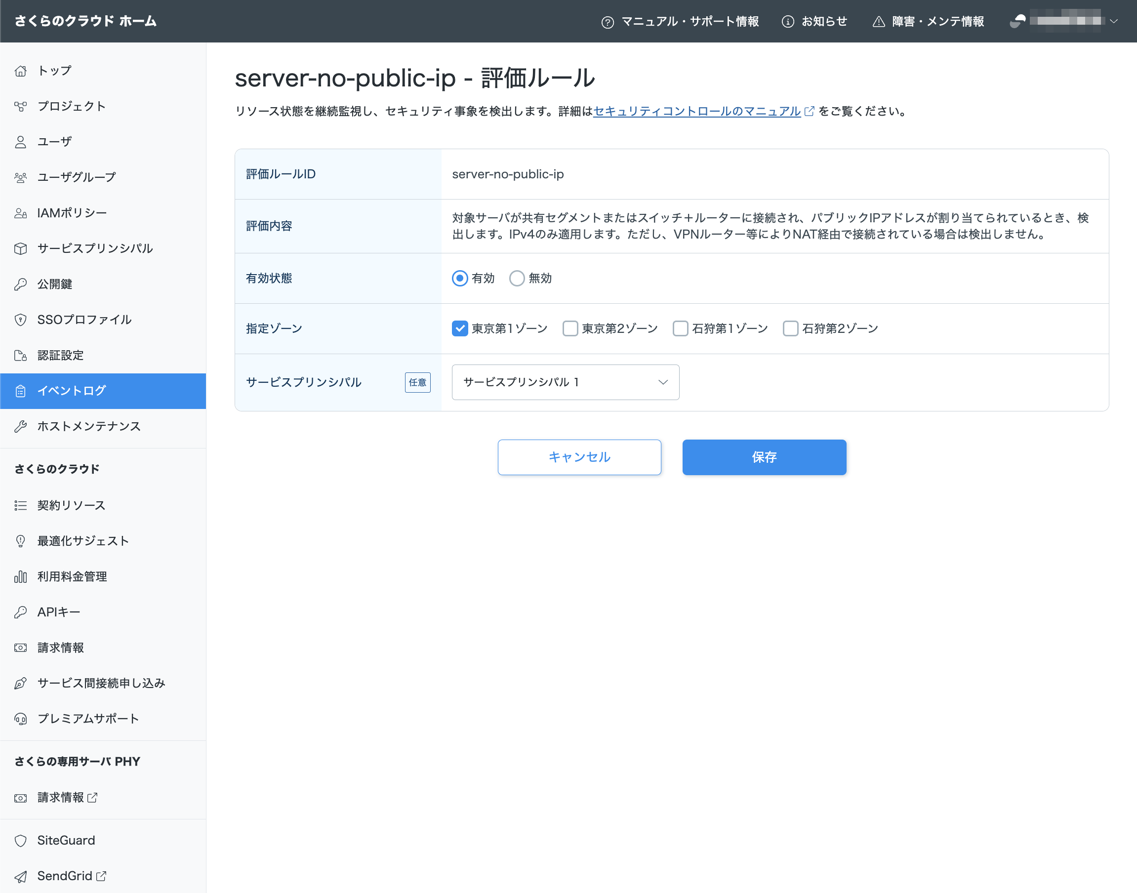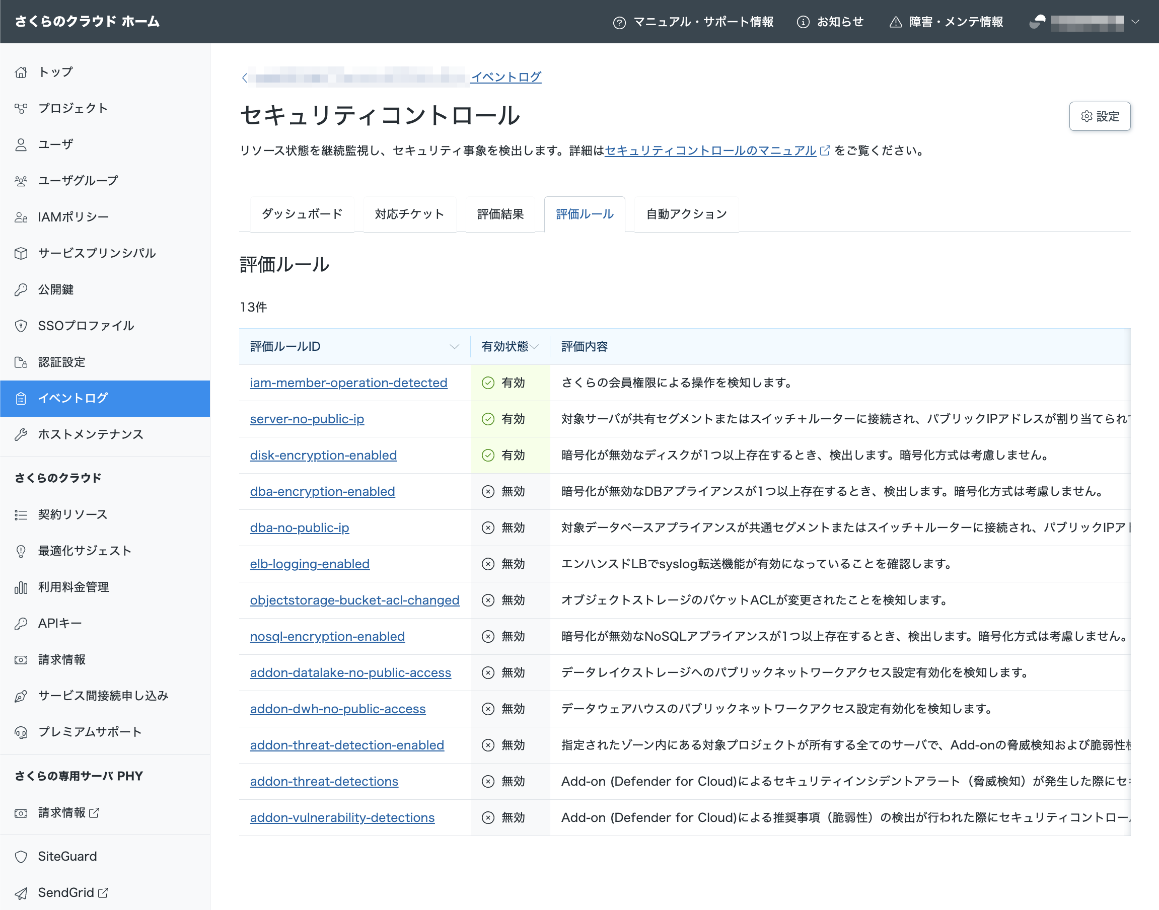 さくらのクラウドのセキュリティコントロール機能に関するページです。