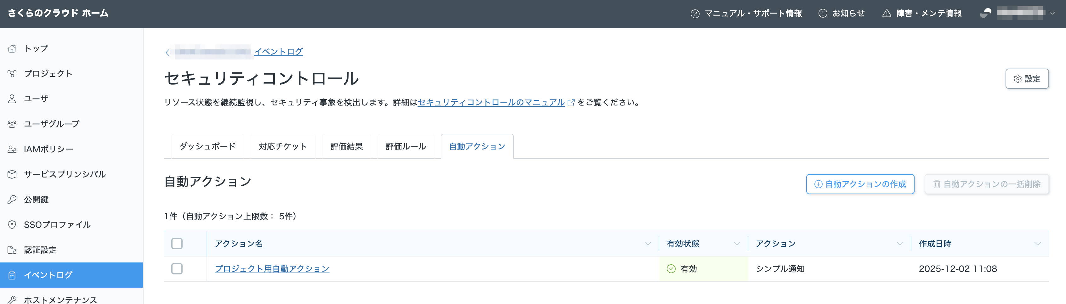 自動アクションは、セキュリティコントロールが問題を検知したときに、あらかじめ設定した条件に従って自動的に通知や処理を行う機能です。
