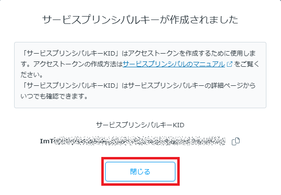 1-3. 「サービスプリンシパルキーの作成」をクリックします。