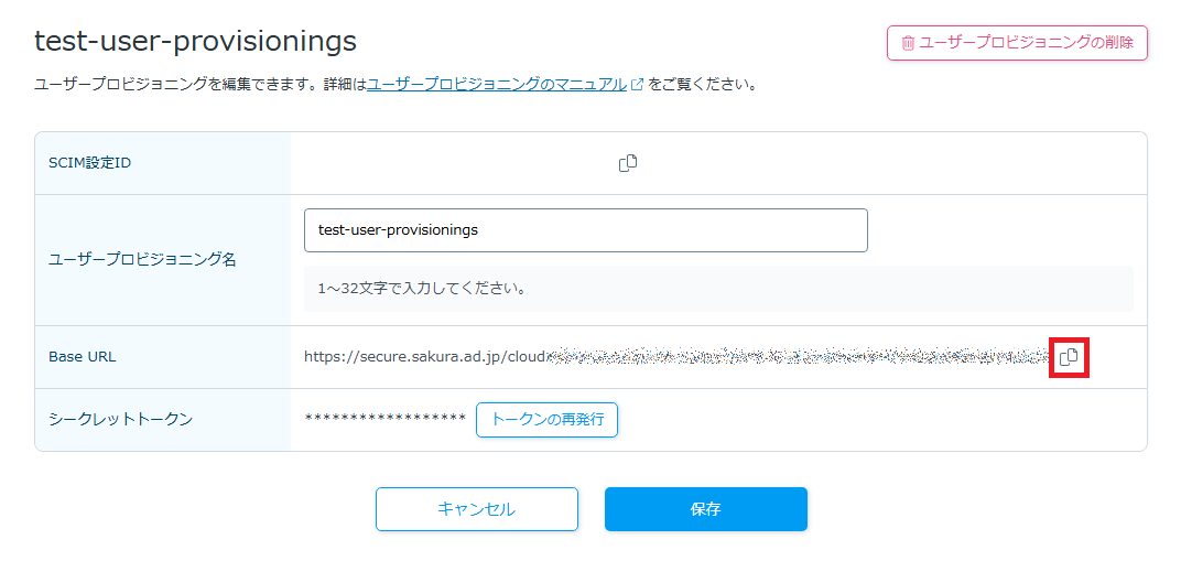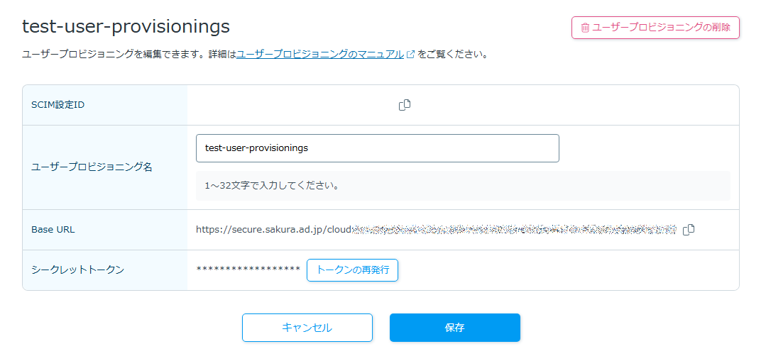ユーザープロビジョニングの詳細画面が表示されます。