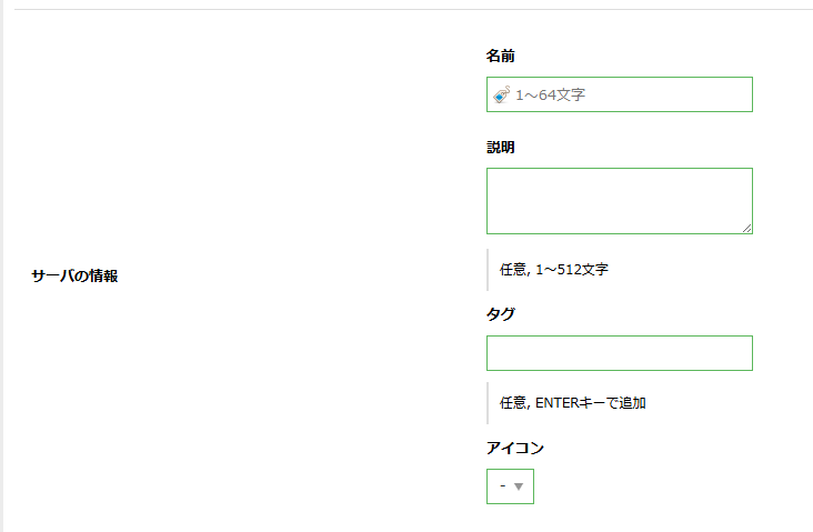 サーバーの情報各項目