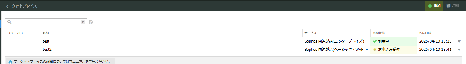ライセンス通知書送付後、マーケットプレイス画面 に表示される状態は、利用中に変更されます。