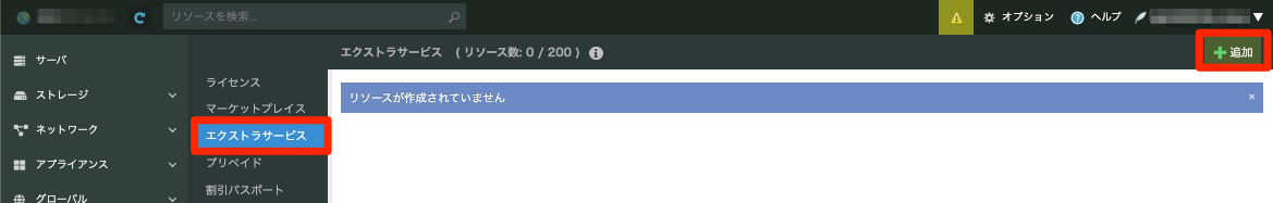 コントロールパネルの右上の「オプション」を選択し、左側の「エクストラサービス」を選択ください。