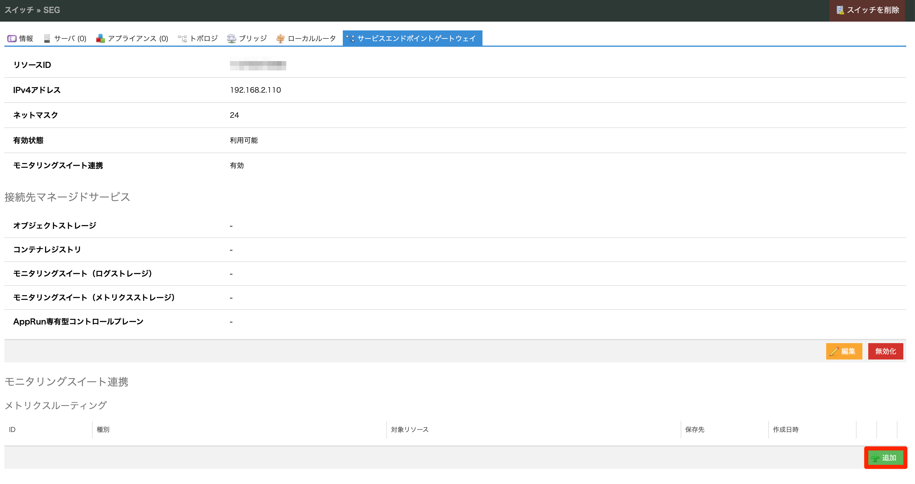 サービスエンドポイントゲートウェイのご利用には、スイッチの事前作成が必要です。