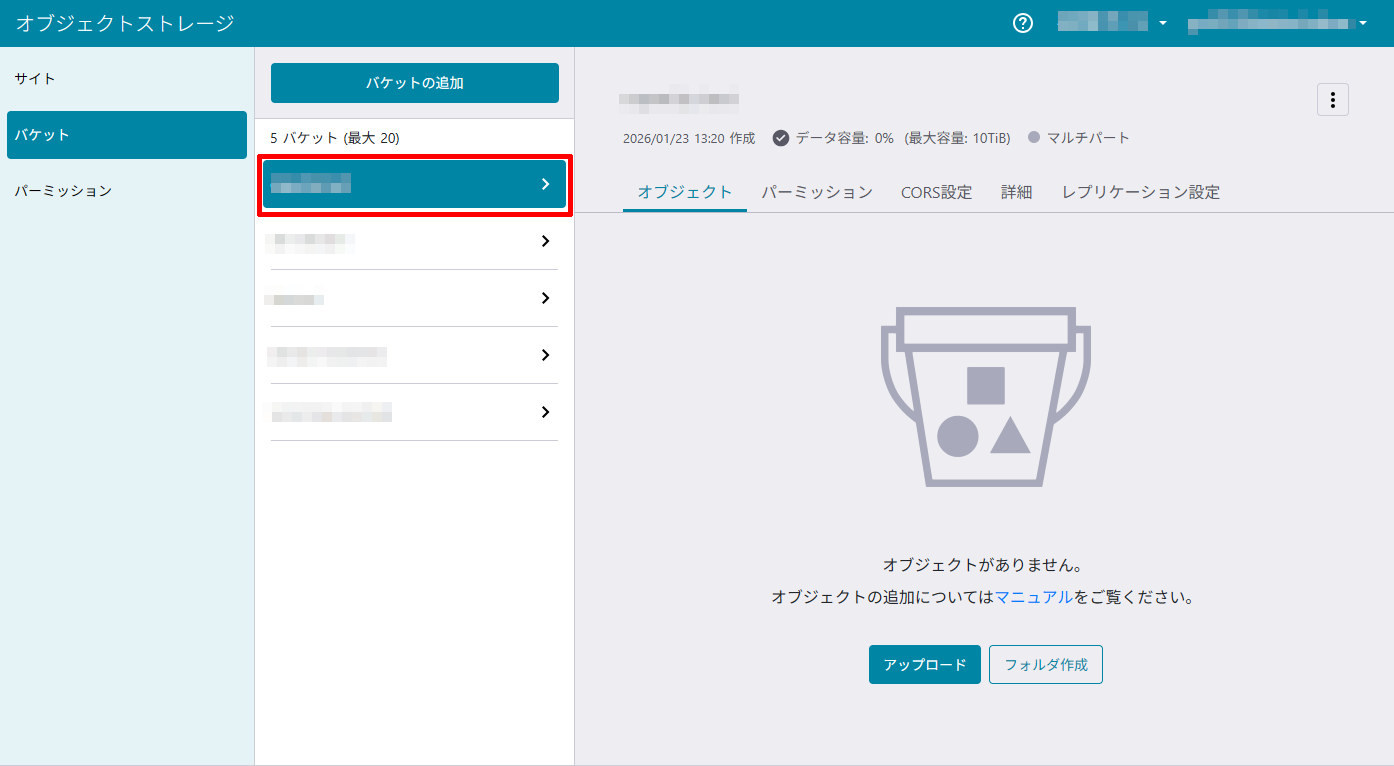 オブジェクトストレージの利用料金については サービスサイト を参照ください。