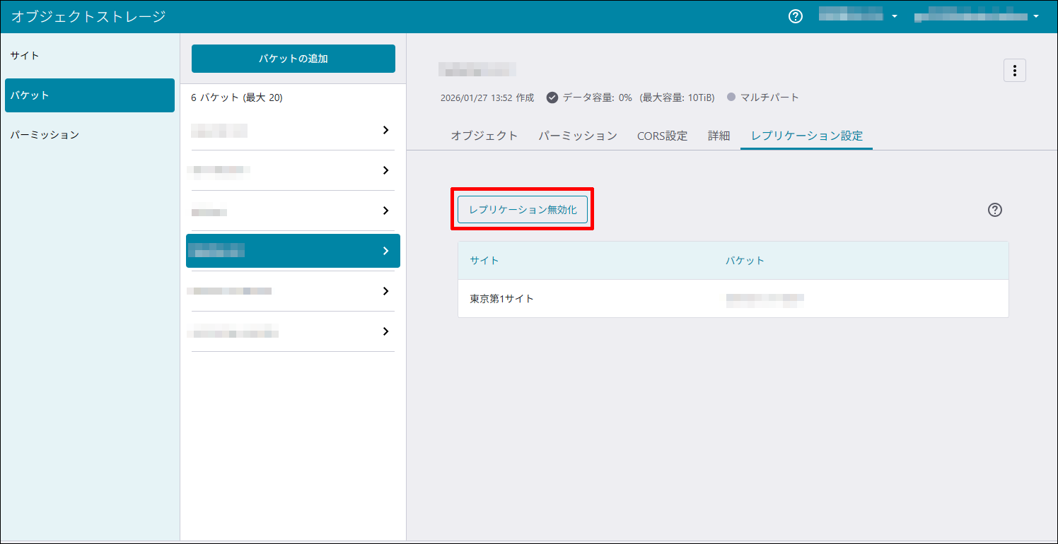 CRR設定を無効化しても、デスティネーションバケットのバケットおよびオブジェクトは自動で削除されません。