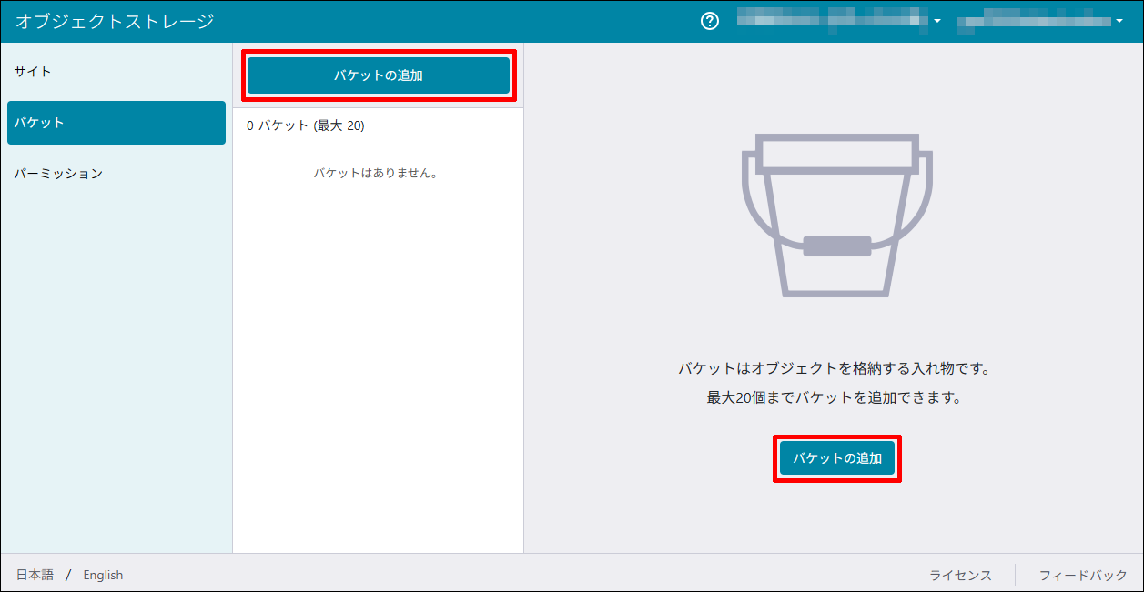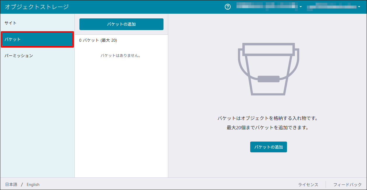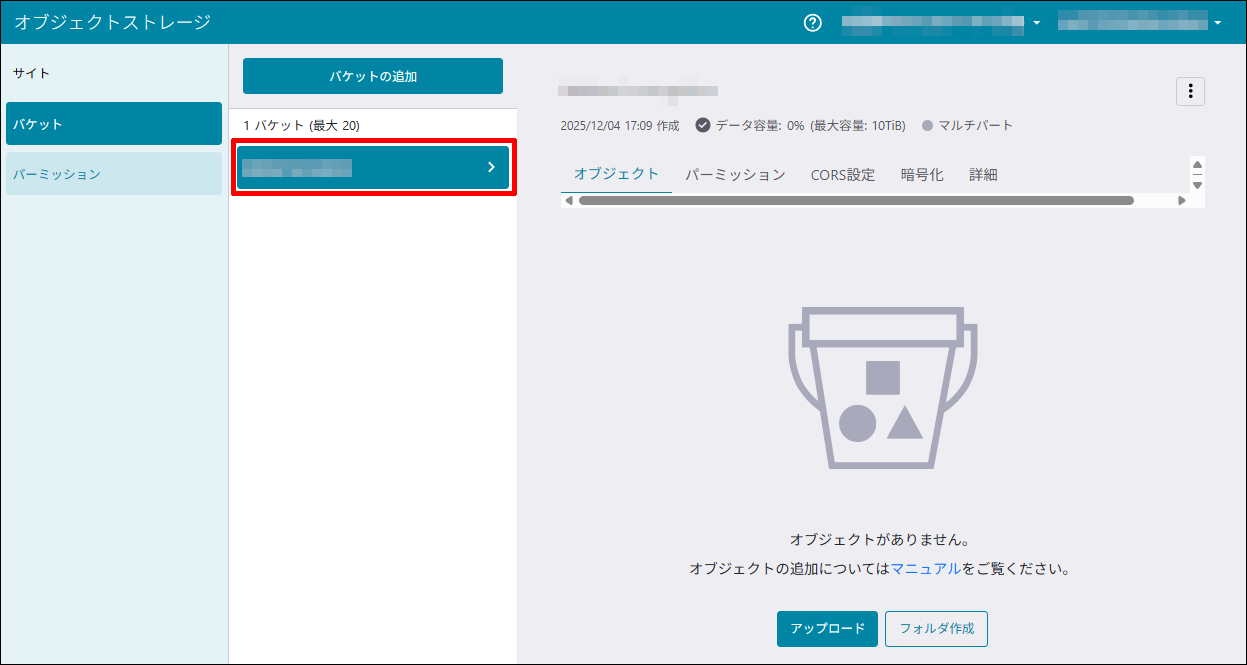 バケット名はユーザやサイトに共通してオブジェクトストレージ全体で一意である必要があるため、他のお客様のご利用状況などによりご希望のバケット名が指定できない場合もあります。