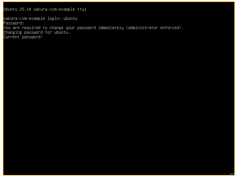 初回ログインは VNC コンソールから行います。認証情報を投入する手段がないため、SSH 接続はご利用いただけません。