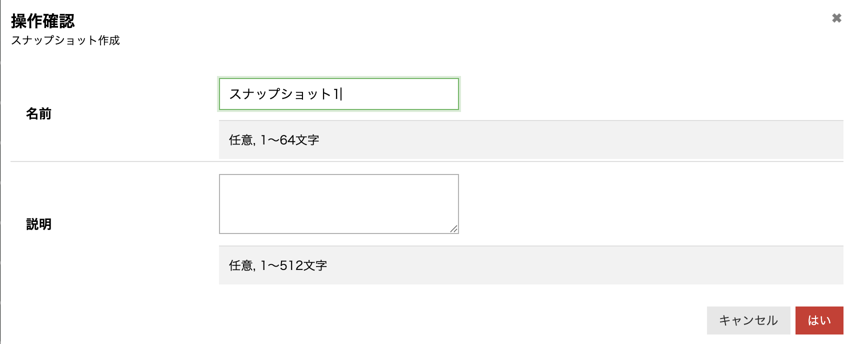 任意の名前をつけて、「はい」ボタンを押下し作成します。