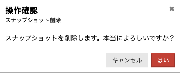 「スナップショット」タブから削除するスナップショットの「削除」アイコンを押下します。