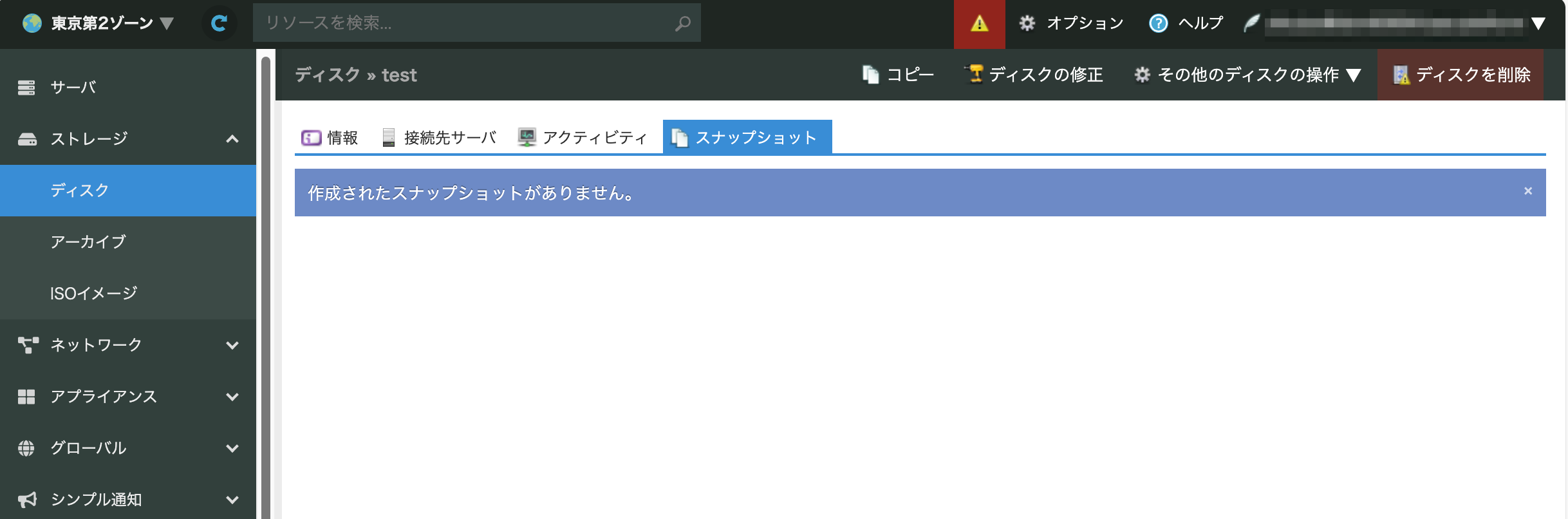 ディスクを削除する際には、事前にスナップショットを削除いただく必要がございます。