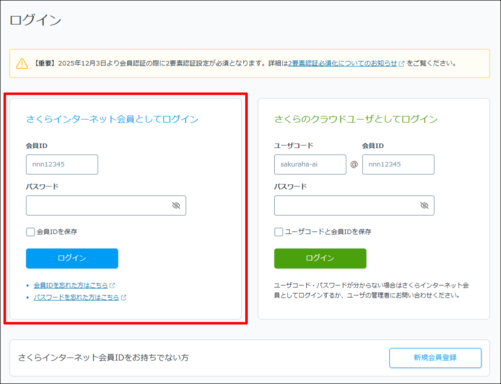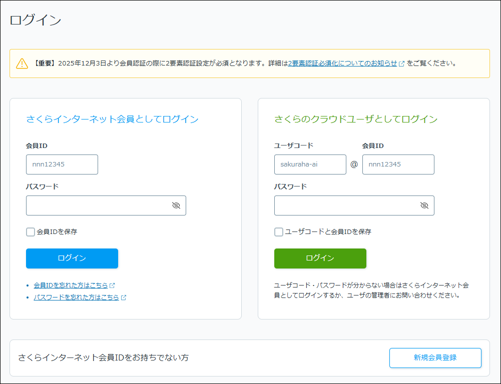 さくらのクラウド へ、さくらインターネット会員またはさくらのクラウドユーザとしてログインします。