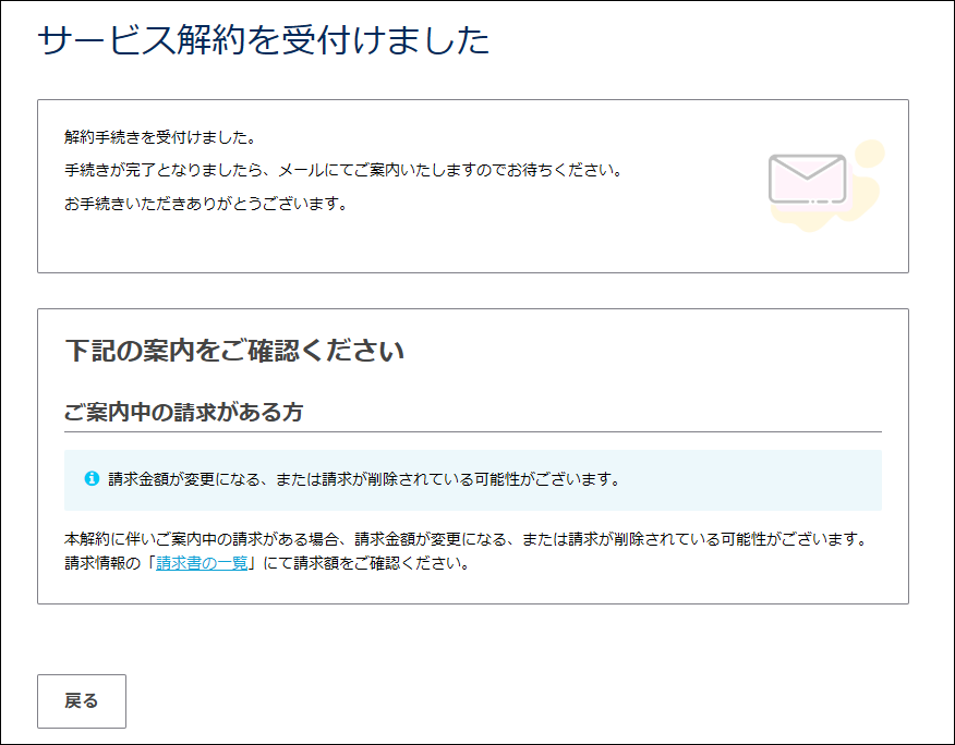 完了画面が表示されることを確認します。会員IDに登録されているメールアドレスに受付メールが送信されます。