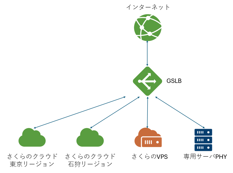 DNSベースで複数リージョンやサイトへの負荷分散を実現します。災害対策(DR)やグローバル展開時のレイテンシ最適化に有効です。リージョン間だけでなく、さくらのVPS、専用サーバPhyとも振り分けがかの奥です。