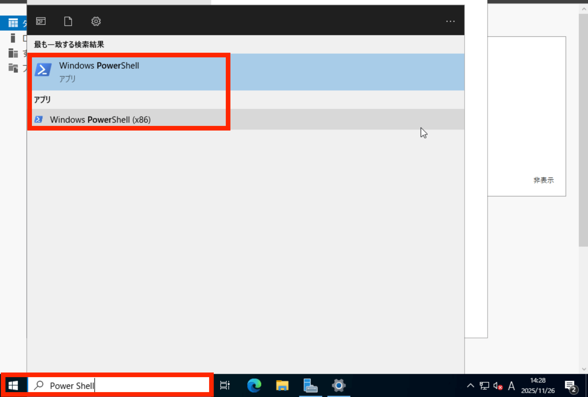 1. Administratorとしてログイン後にPowerShellを起動します。