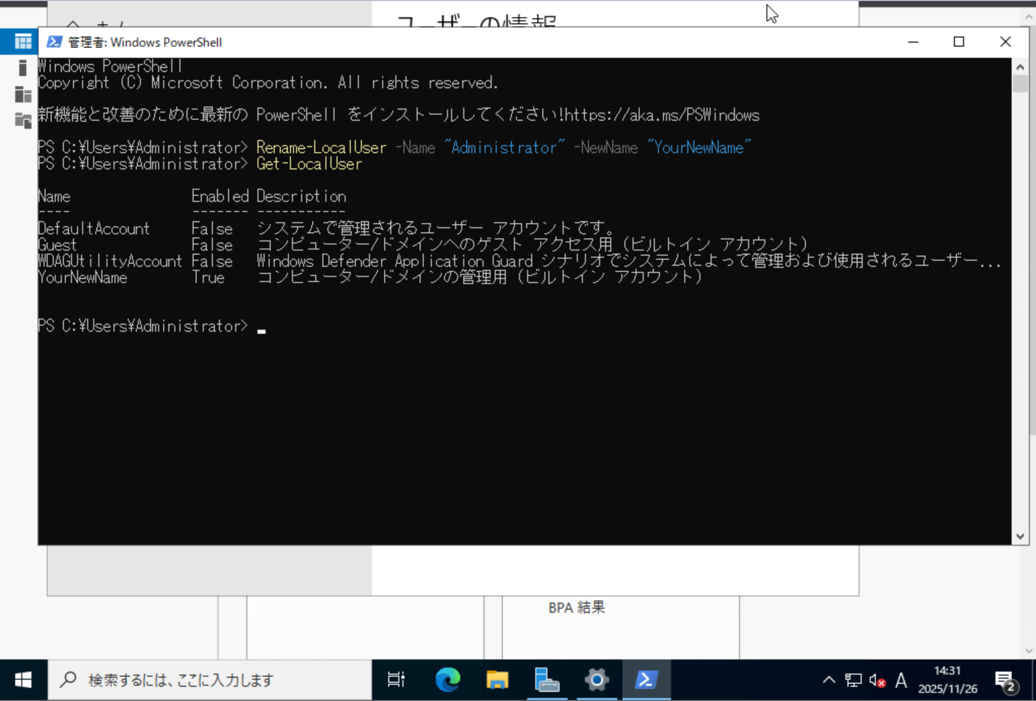 Rename-LocalUser -Name "Administrator" -NewName "新しいユーザー名"